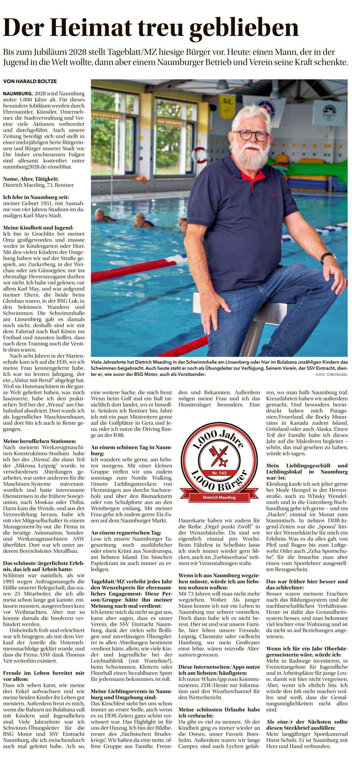 Dietrich Maeding: Der Heimat treu geblieben. Naumburger Tageblatt.