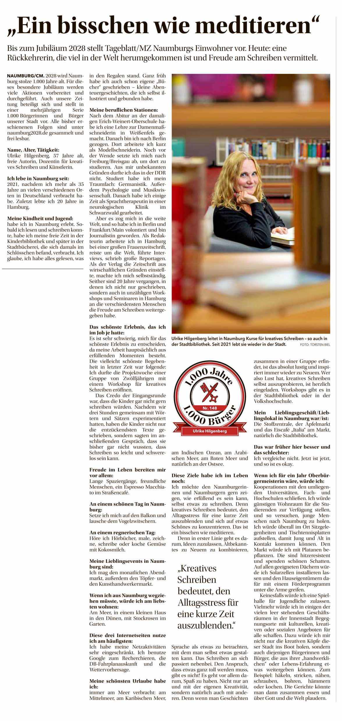 Ulrike Hilgenberg: Ein bisschen wie meditieren. Naumburger Tageblatt