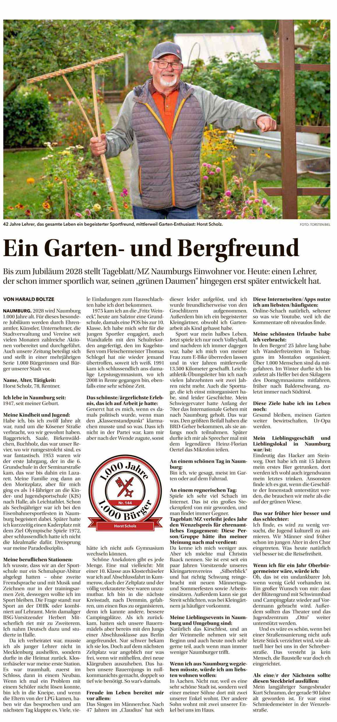 Horst Scholz: Ein Garten- und Bergfreund. Naumburger Tageblatt