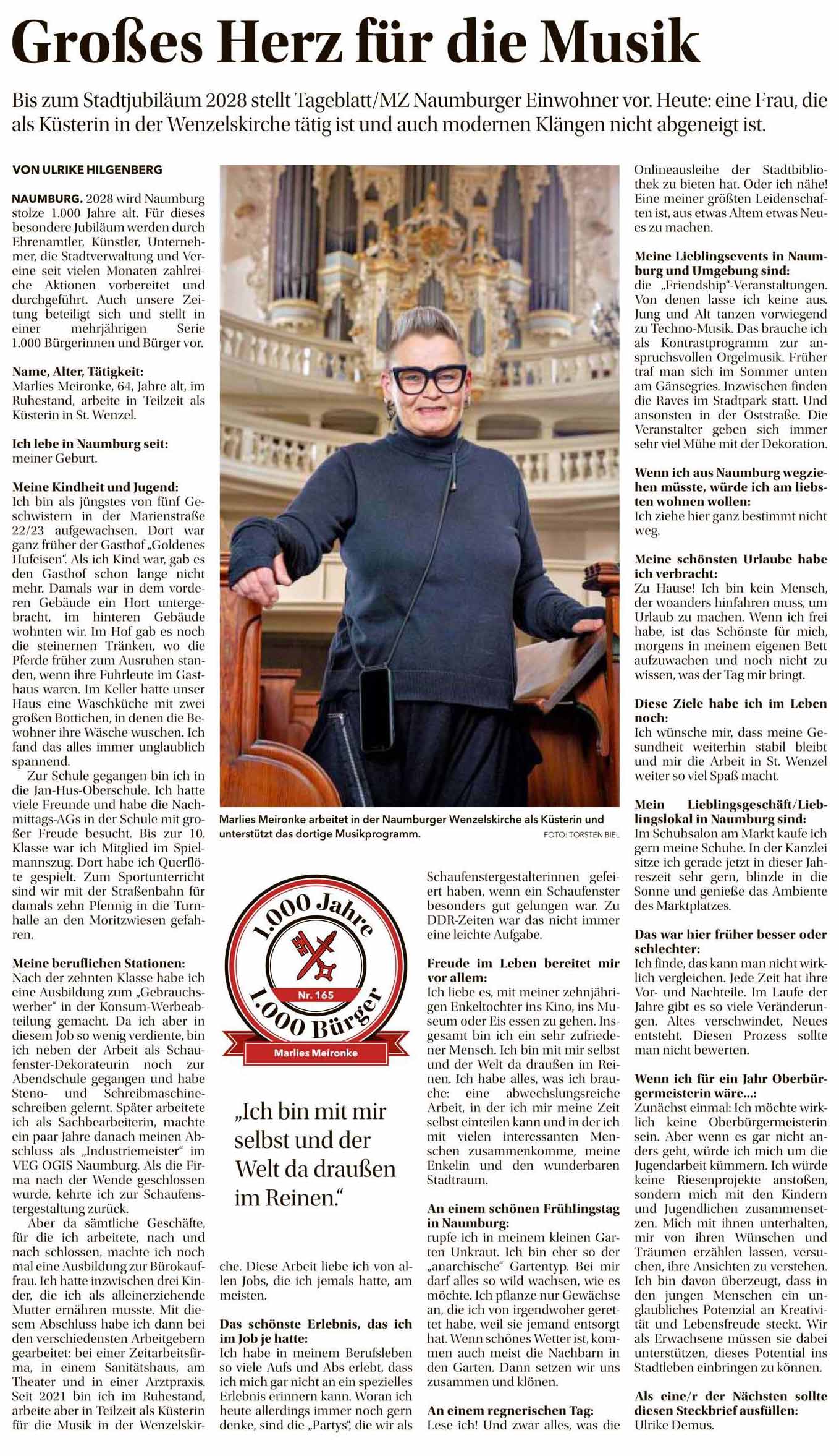 Marlies Meironke: Großes Herz für die Musik. Naumburger Tageblatt