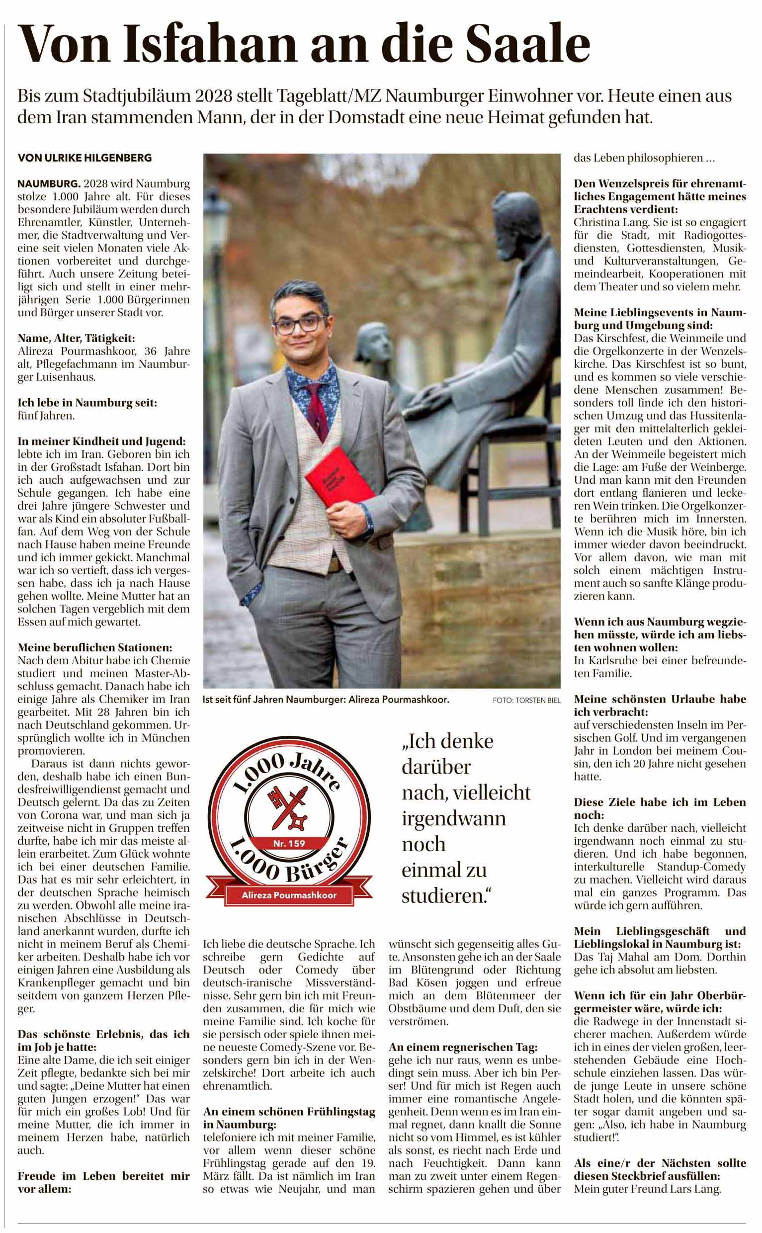 Alireza Pourmashkoor: Von Isafahan an die Saale. Naumburger Tageblatt