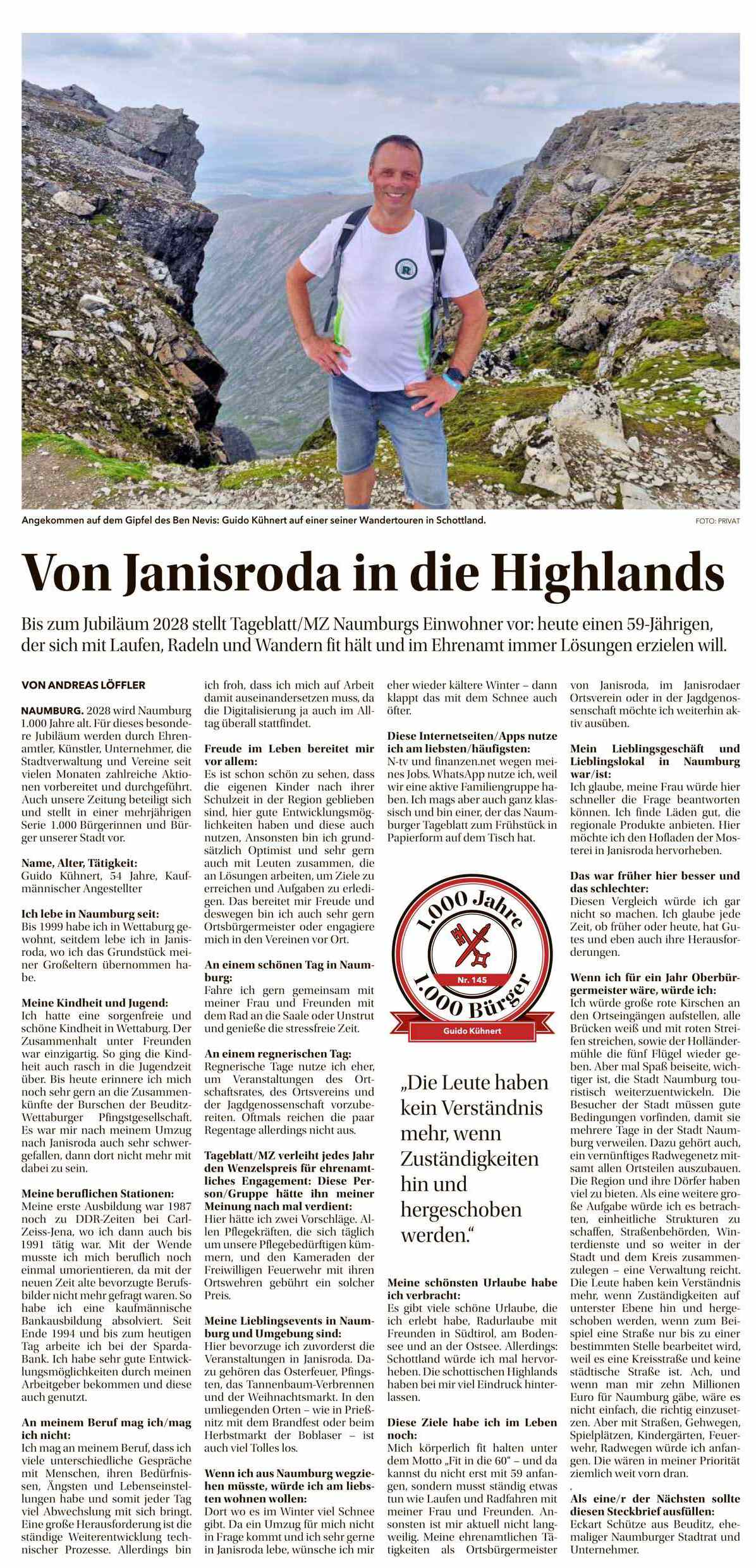 Guido Kühnert: Von Janisroda in die Highlands. Naumburger Tageblatt