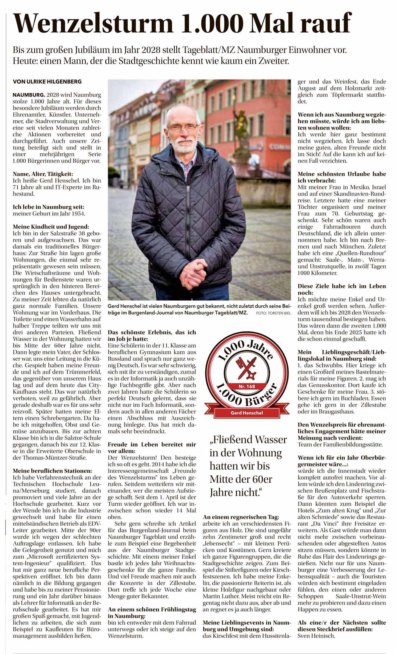 Gerd Henschel: Wenzelsturm 1000 mal rauf. Naumburger Tageblatt