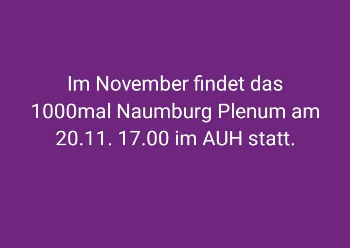 Im November findet das 1000mal Naumburg Plenum am 10.11. 17.00 im AUH statt.