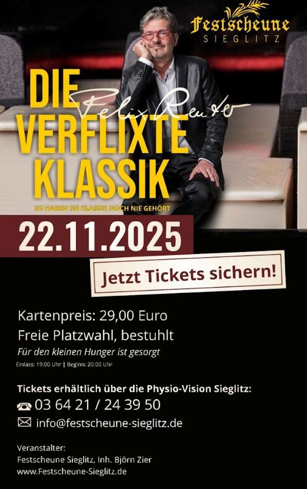 Sieglitz, Festscheune - Eintritt: 29.-€ - Vorbestellung: 036421 243950 - info@festscheune-sieglitz.de