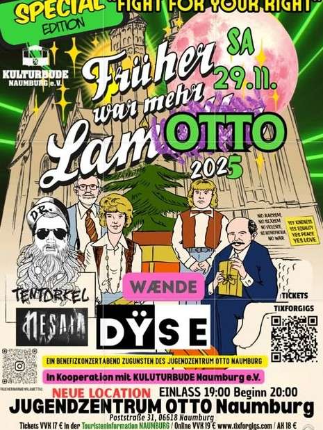 Jugendzentrum Otto, Naumburg, Poststr. 31 - VVK 17.-€ in der Tourist-Information am Markt / AK 19.-€