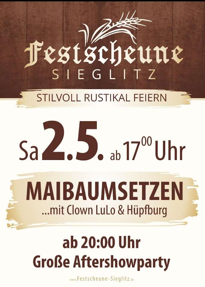 Maibaum setzen in Sieglitz – mit Clown Lulo & Hüpfburg – danach Aftershow Party